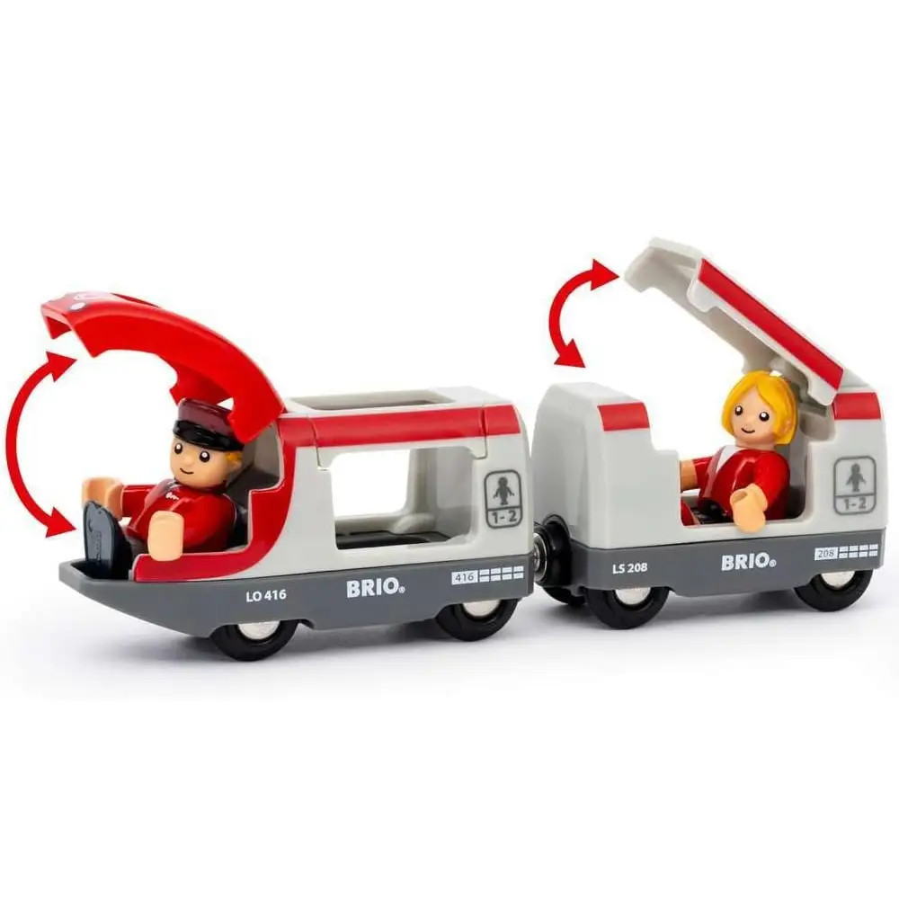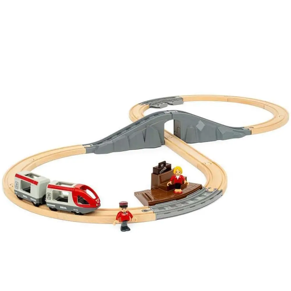 • Поместите фигурку машиниста в переднюю часть поезда, заберите пассажира с его багажом, ожидающего на платформе, и начните путешествие по знаменитым деревянным путям BRIO.