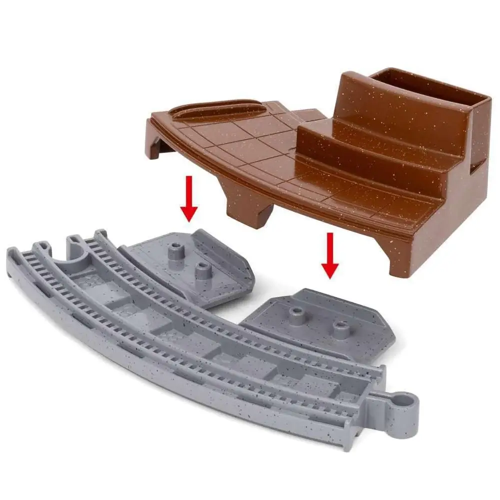 • Набор из 22 предметов имеет классическую схему путей в виде восьмерки с пересечением туннеля и моста в центре и платформой станции для игры за персонажей.