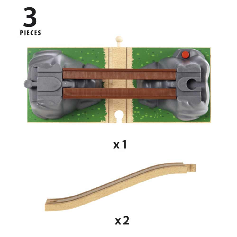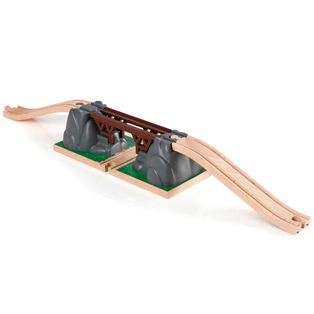 Мост разборный BRIO 33391 — это не совсем обычный мост. Благодаря мосту вы можете создать аварийную (конечно игрушечную) ситуацию. Для этого необходимо нажать на маленькую красную кнопку на скале и мост разрушится.