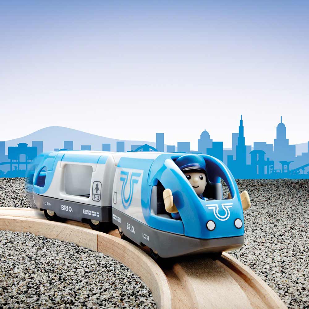 Этот современный поезд с питанием от батареек путешествует по всем железнодорожным путям BRIO. Водитель двигателя удобно сидит на своем месте, готовый вывезти пассажиров на новые приключения. Пусть воображение определит пункт назначения.
