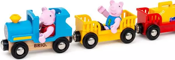 Отправьтесь в увлекательное путешествие на поезде вместе с Пеппой и Джорджем на наборе 36127 «Поезд Свинки Пеппы». Этот красочный набор включает фигурки Пеппы и Джорджа, которые идеально помещаются в локомотив и пассажирские вагоны большого поезда. Созданный для малышей и дошкольников, этот набор украшен культовыми магнитами BRIO. Он станет отличным дополнением к любой железной дороге BRIO World. Что же можно увидеть из окна? Благодаря забавным деталям, вдохновленным телесериалом, он идеально подходит для маленьких поклонников и полностью совместим со всеми игрушками BRIO World.