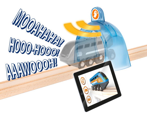 Станция ужасов Smart Tech Sound — это захватывающее дополнение к BRIO World, которое позволяет детям контролировать интерактивную игровую среду. локомотив Smart Tech 33971 является центральным элементом игры и может общаться с окружающей средой, автоматически реагируя на аксессуары Smart Tech Sound, такие как станция ужасов Smart Tech Sound, различными действиями, такими как звуки, движение и разноцветные огни, чтобы улучшить игру. Настройте игру еще лучше, записав свои собственные звуки или изменив звуковую среду с помощью приложения Smart Tech Sound.